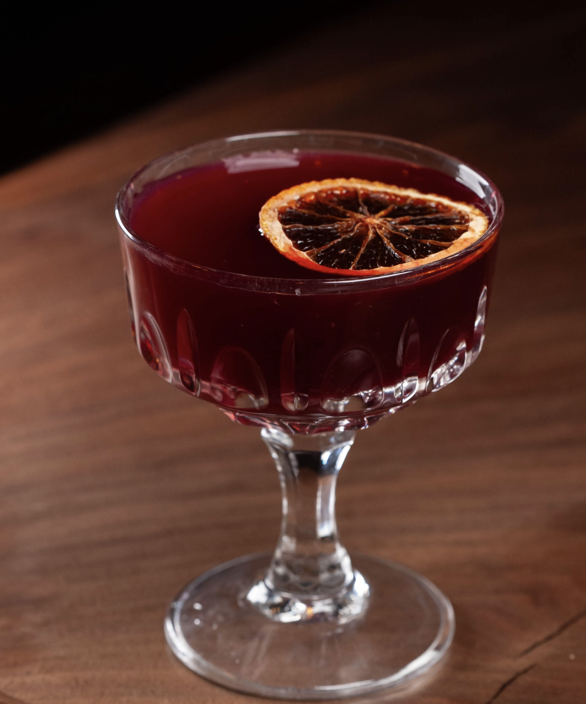 Combine ingredients in a mixing glass. Stir with ice until well chilled and strain into a chilled coupe glass. Garnish with a dehydrated blood orange wheel.