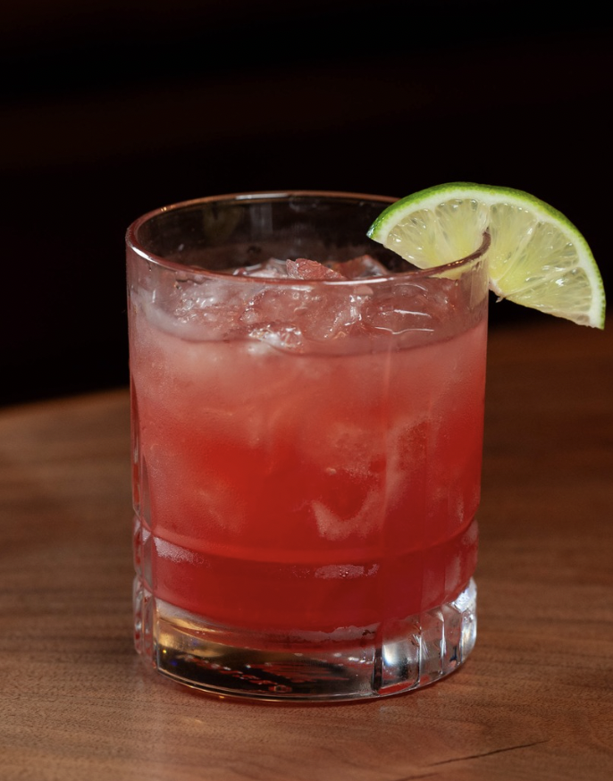 Combine all ingredients in a shaker with ice. Shake and strain over fresh ice in a rocks glass. Garnish with a lime wedge.