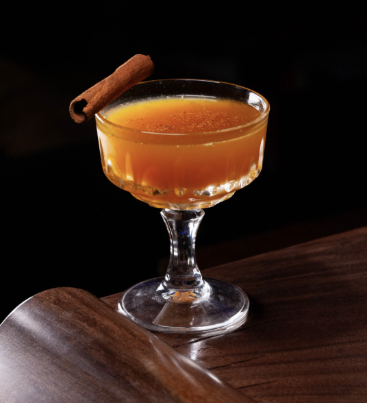 Combine all ingredients in a shaker with ice. Shake and strain into a chilled coupe glass. Garnish with a cinnamon stick or freshly grated nutmeg.