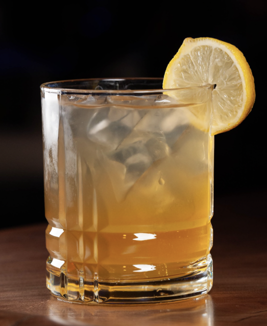 Build in a rocks glass, add ice and stir. Top with club soda and garnish with a lemon wheel.