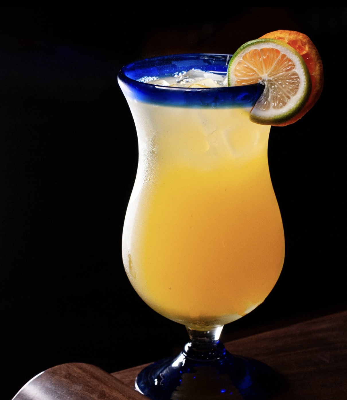 Combine all ingredients in a shaker with ice. Shake and strain over fresh ice in a hurricane glass. Garnish with an orange slice and a cherry.